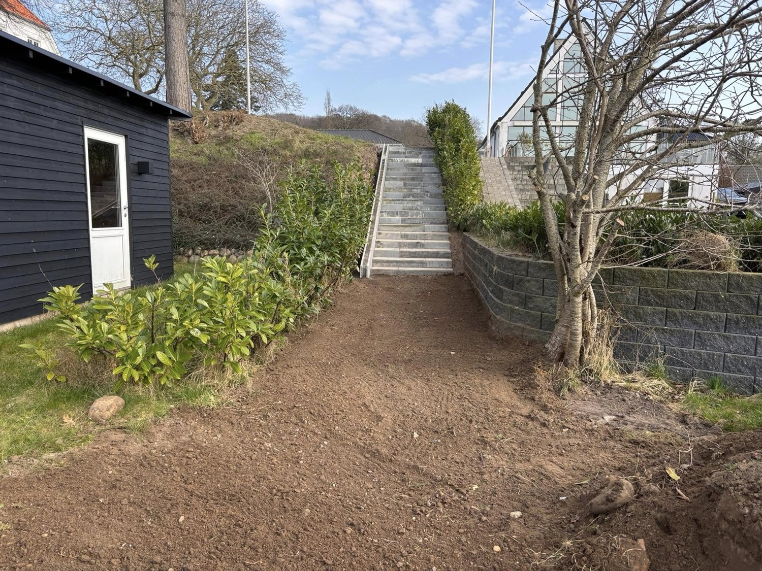 Bredballe: sætning af laaaaang trappe samt udligning af granitskæever.